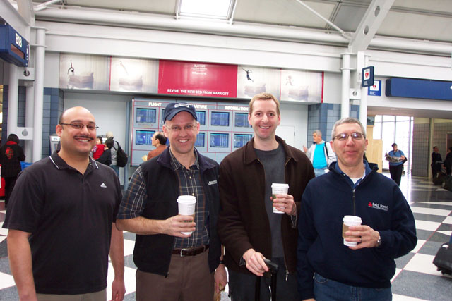 | At O'hare before boarding the plane to Beijing. From left, Jaime, Jim,