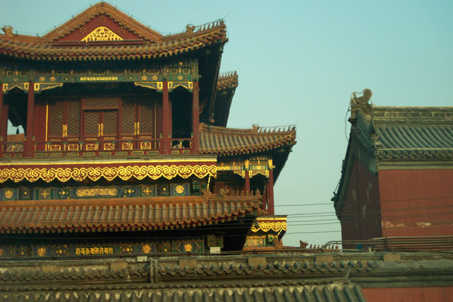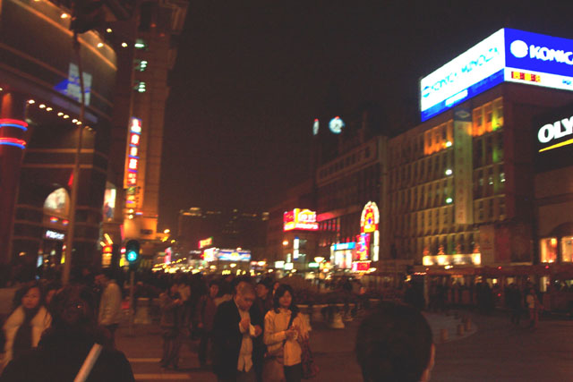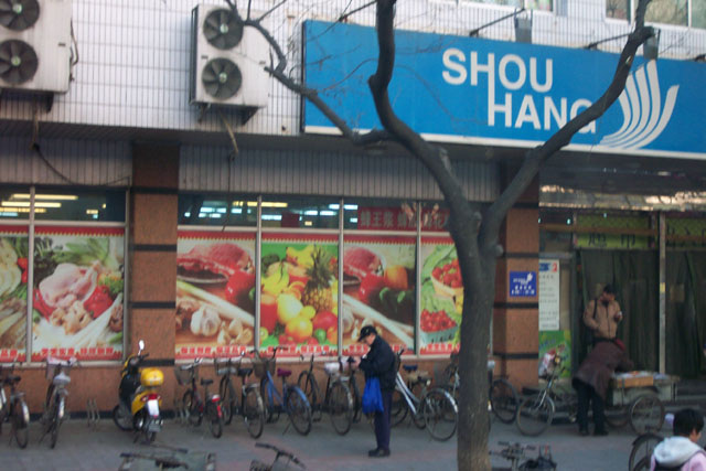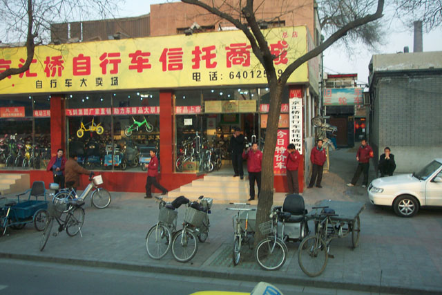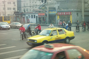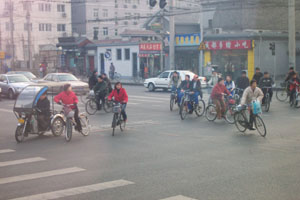 | Intersection of two 3-lane streets in Beijing. The bike riders are sitting