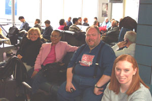 At O'hare before boarding the plane to Beijing. From left, Charla, Florine,