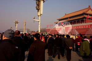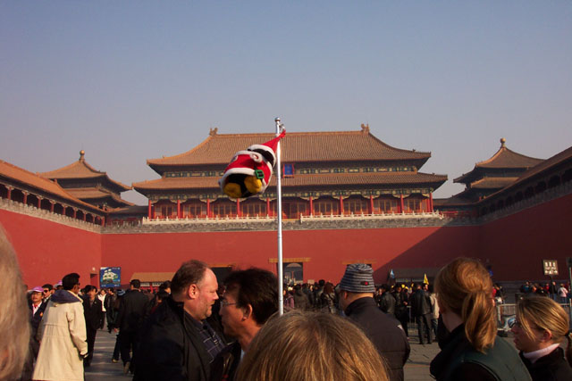 Following the Santa Penguin into the Forbidden City. |